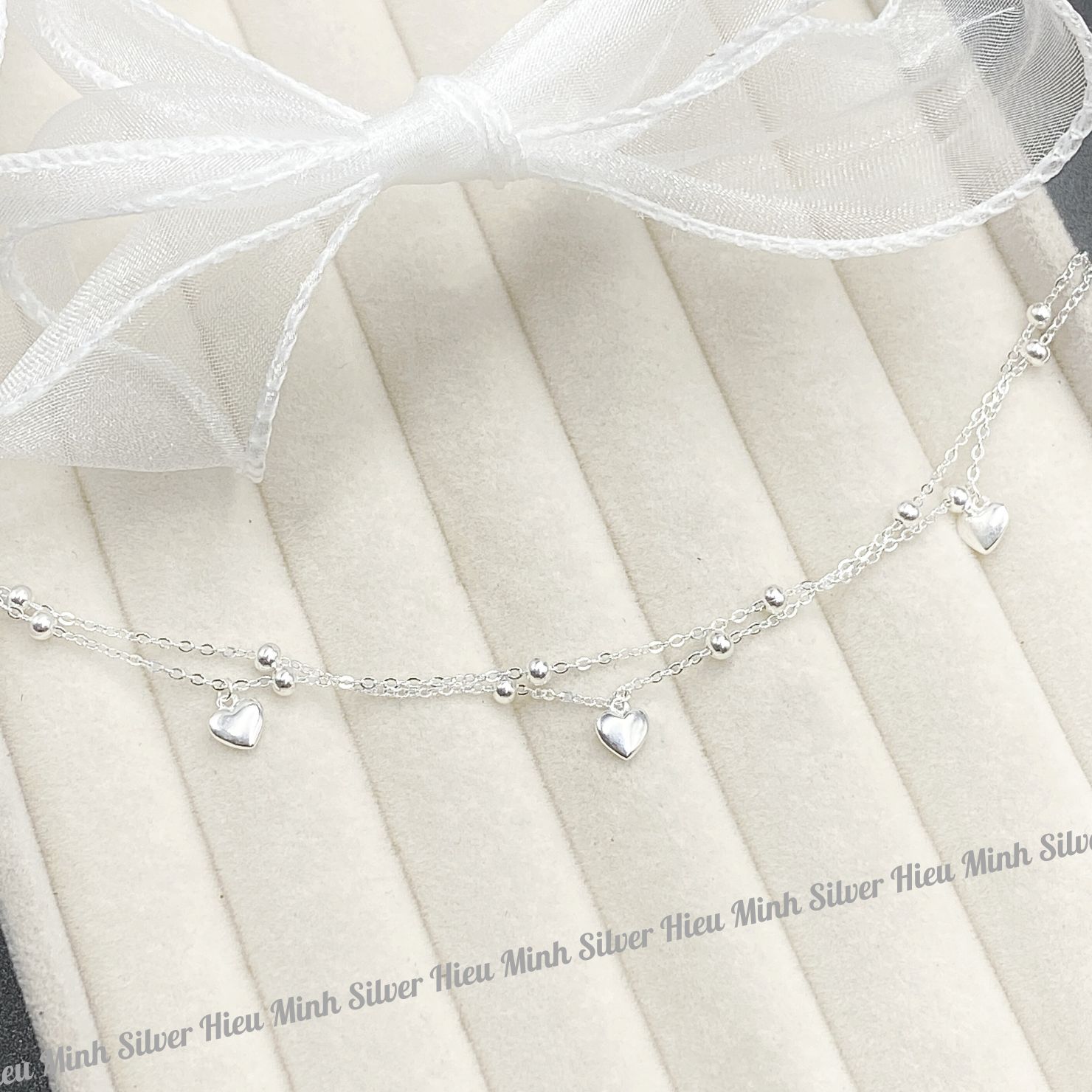 ✨Lắc Tay Nữ Bạc 925 Trái Tim Kép BẠC HIỂU MINH LTU625