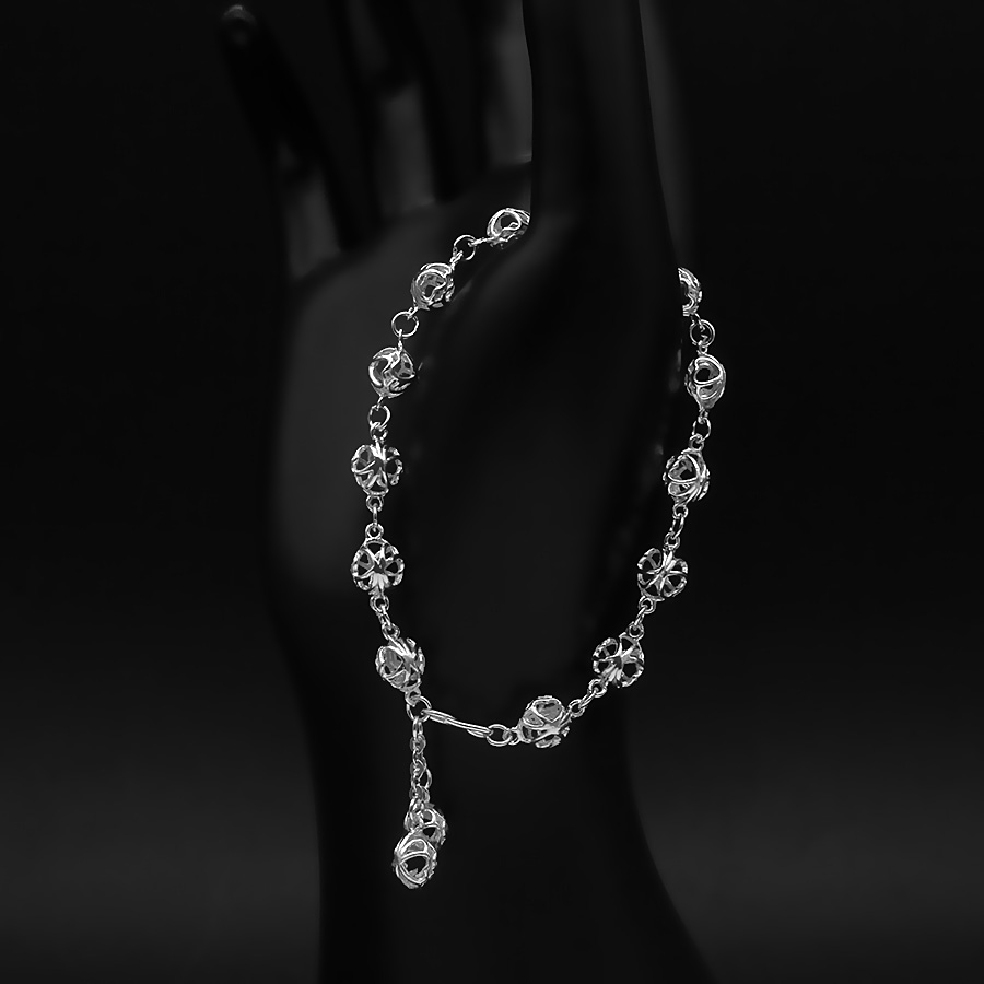Là con gái, hẳn bạn luôn bị cuốn hút trước những bộ cánh thời trang và những đôi giày sành điệu. Tuy nhiên để làm hoàn hảo hình ảnh của mình trong mắt người đối diện, các bạn cần thêm những món phụ kiện bé bé xinh xinh để điểm tô cho vẻ ngoài thêm ấn tượng. Và hôm nay, S sẽ mang đến các bạn cơ hội sở hữu chiếc lắc tay rất dễ thương, được làm bằng bạc ta. Sản phẩm thích hợp với những bạn gái có phong cách dịu dàng, nữ tính.