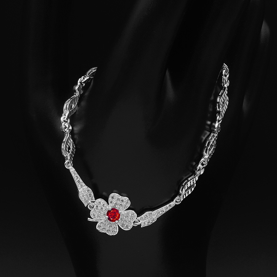 Vòng , Lắc Tay Nữ Bạc Ta Cỏ 4 Lá Đính Đá May Mắn Bạc Hiểu Minh LTU576