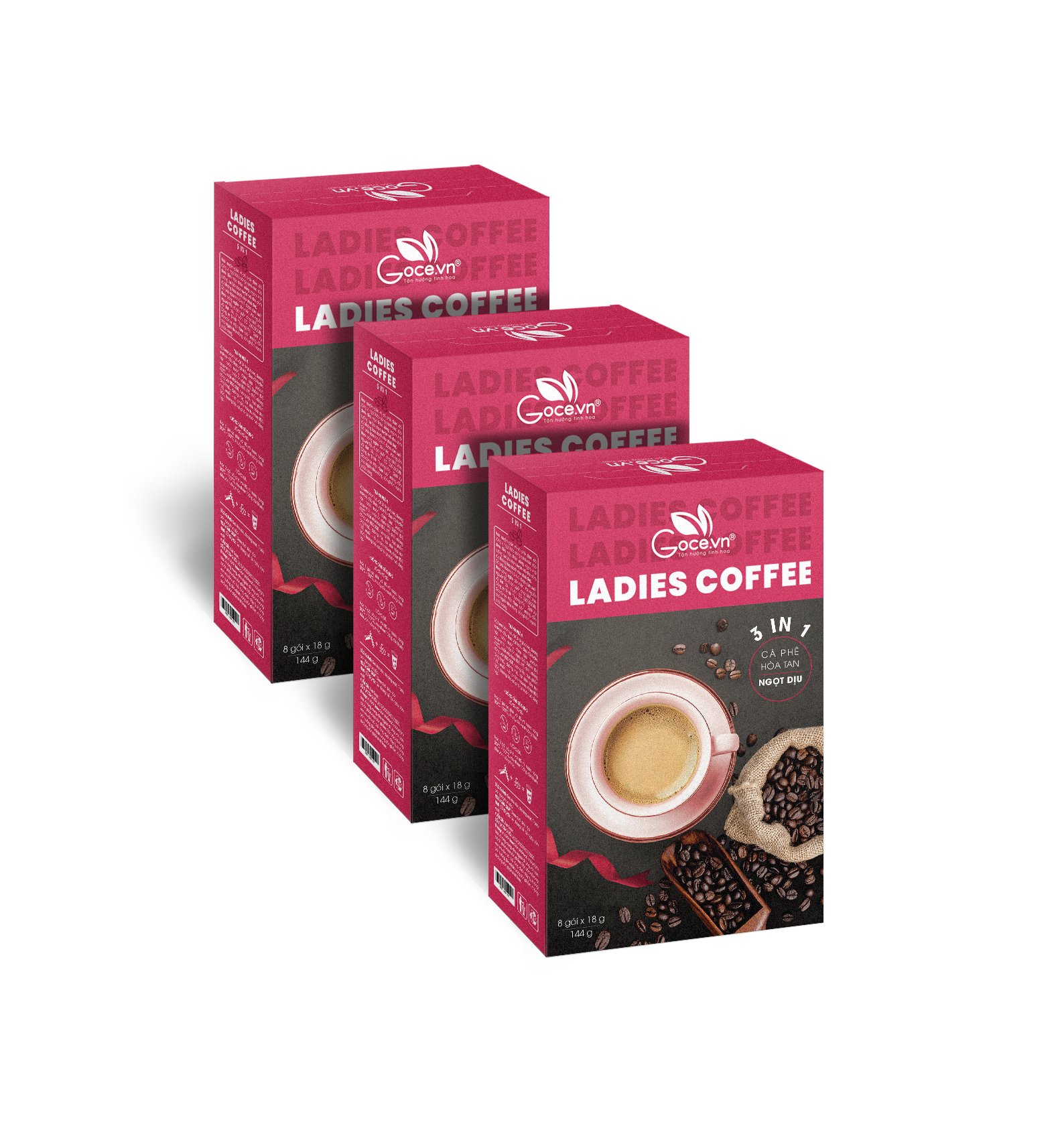 ✨Ladies Coffee Goce - Cafe Nữ hòa tan 3 trong 1 - 144g (8 gói x 18g)