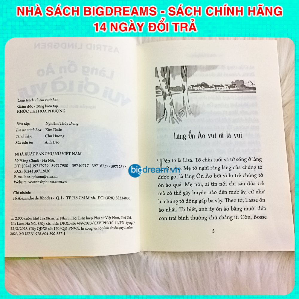 Cứ như thế, mỗi câu chuyện nhỏ trong cuốn sách Làng Ồn Ào vui ơi là vui sẽ làm chúng mình bật cười rúc rích, thỏa sức hòa tâm trí vào những trò nghịch tuổi ấu thơ, sau đó lại có thể ngẫm nghĩ về từng khoảnh khắc đáng giá trong cuộc sống – như nhân vật Lisa đáng yêu vậy: “Tớ nằm đó thức một lúc lâu lắng nghe tiếng rì rào của rừng già. Chỉ là tiếng rì rào khe khẽ thôi. Và những con sóng lăn tăn vỗ nhẹ vào bờ. Những âm thanh đó nghe rất lạ, bỗng nhiên tớ không biết mình đang buồn hay đang vui. Tớ nằm đó cố nghĩ xem mình vui hay buồn, nhưng chẳng quyết định được…”