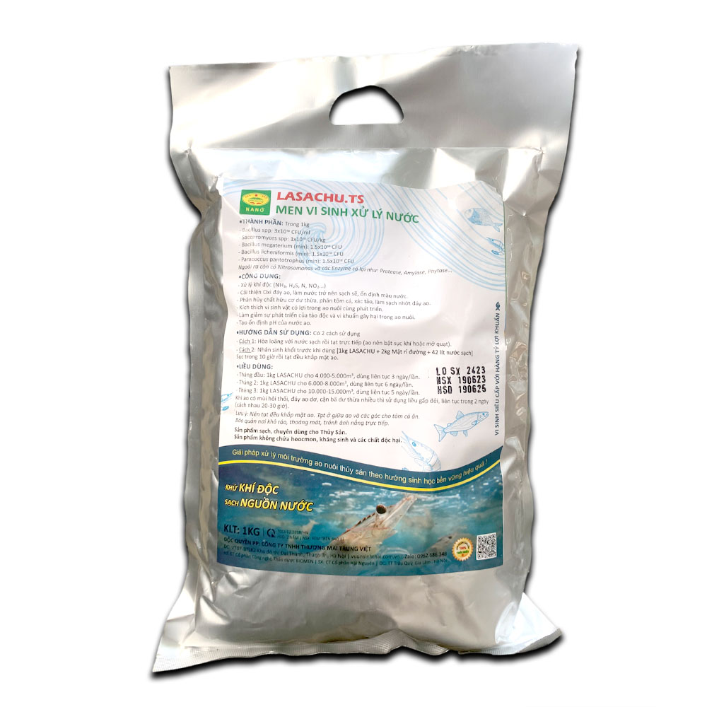 Chế phẩm vi sinh xử lý môi trường ao nuôi Thủy sản VI SINH SIÊU CẤP ! PHÂN GIẢI ĐỘC TỐC. ỔN ĐỊNH MÀU NƯỚC ! Chế phẩm sinh học Lasachu là dòng chế phẩm