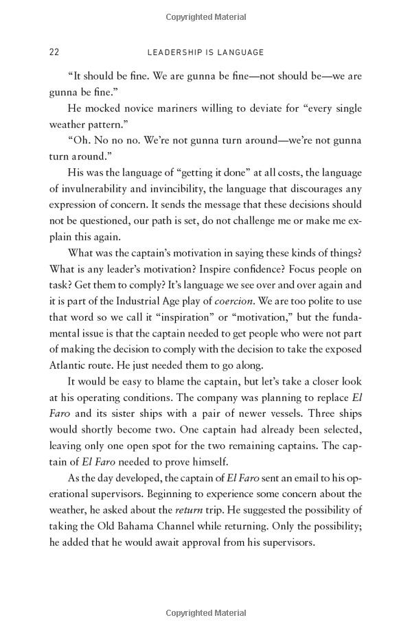 As a submarine captain, Marquet used his counterintuitive model of leadership to turn the worst-performing submarine crew into the best-performing one in the fleet, a story he recounted in his bestselling book Turn the Ship Around! Now, in Leadership Is Language, he draws on a wide range of examples, from the 2017 Oscars Best Picture mishap to the tragic sinking of the SS El Faro, to show you exactly how the words you use (and don't use) impact how your people contribute.