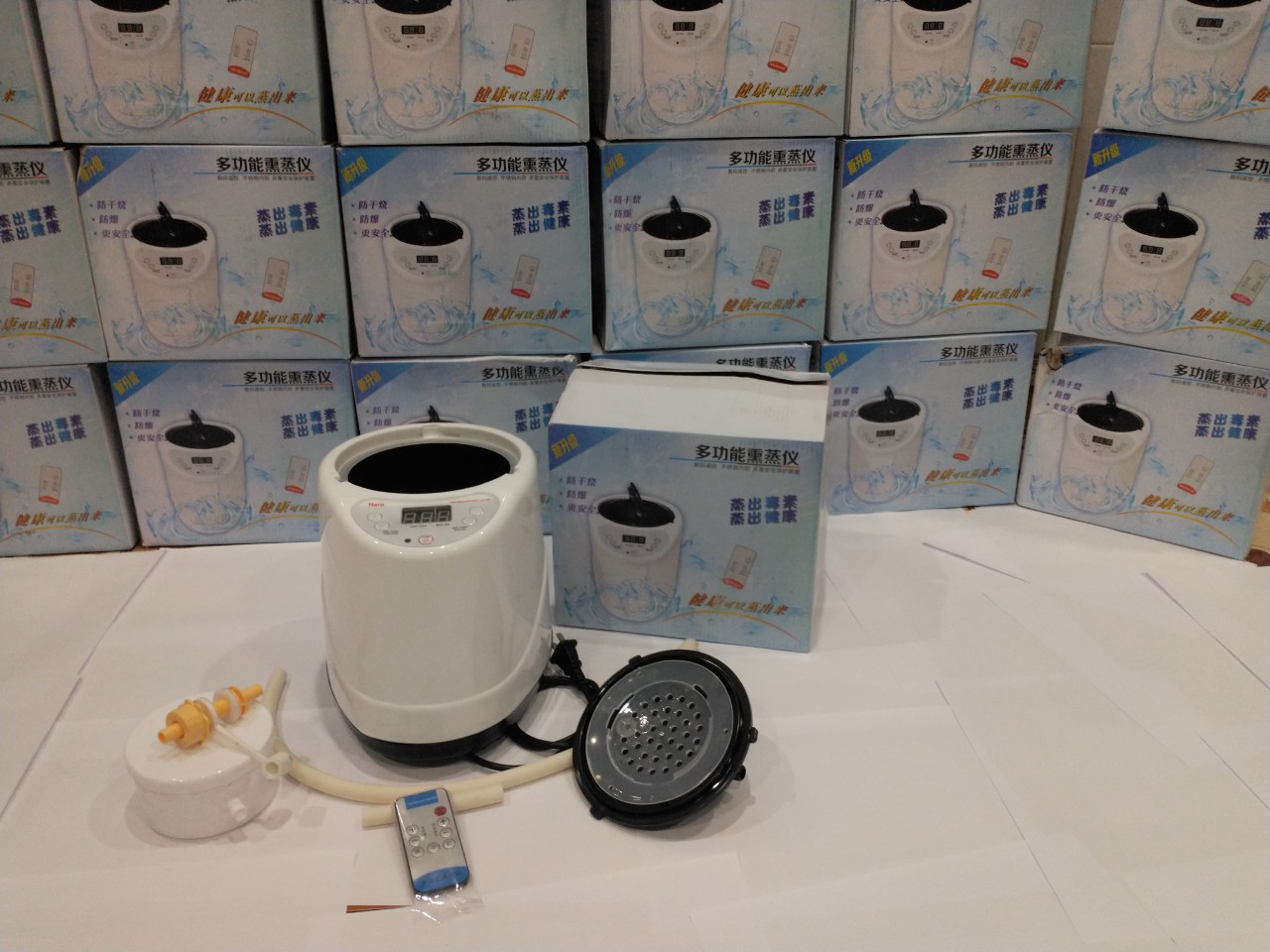 - Nồi xông hơi – Điện áp nồi tạo hơi(máy xông) : 220V – Công suất nồi tạo hơi(máy xông): 1000W – Dung tích nồi tạo hơi 2l – Đồng hồ hẹn giờ: 0 –60 phút ( Có thể điều chỉnh trực tiếp trên nồi hoặc bằng Điều khiển từ xa) – Có nút điều chỉnh lượng hơi nhiều hay ít – Thời gian làm sôi: 5 – 10 phút (phụ thuộc vào lượng nước) – Cân nặng: 2.2 kg