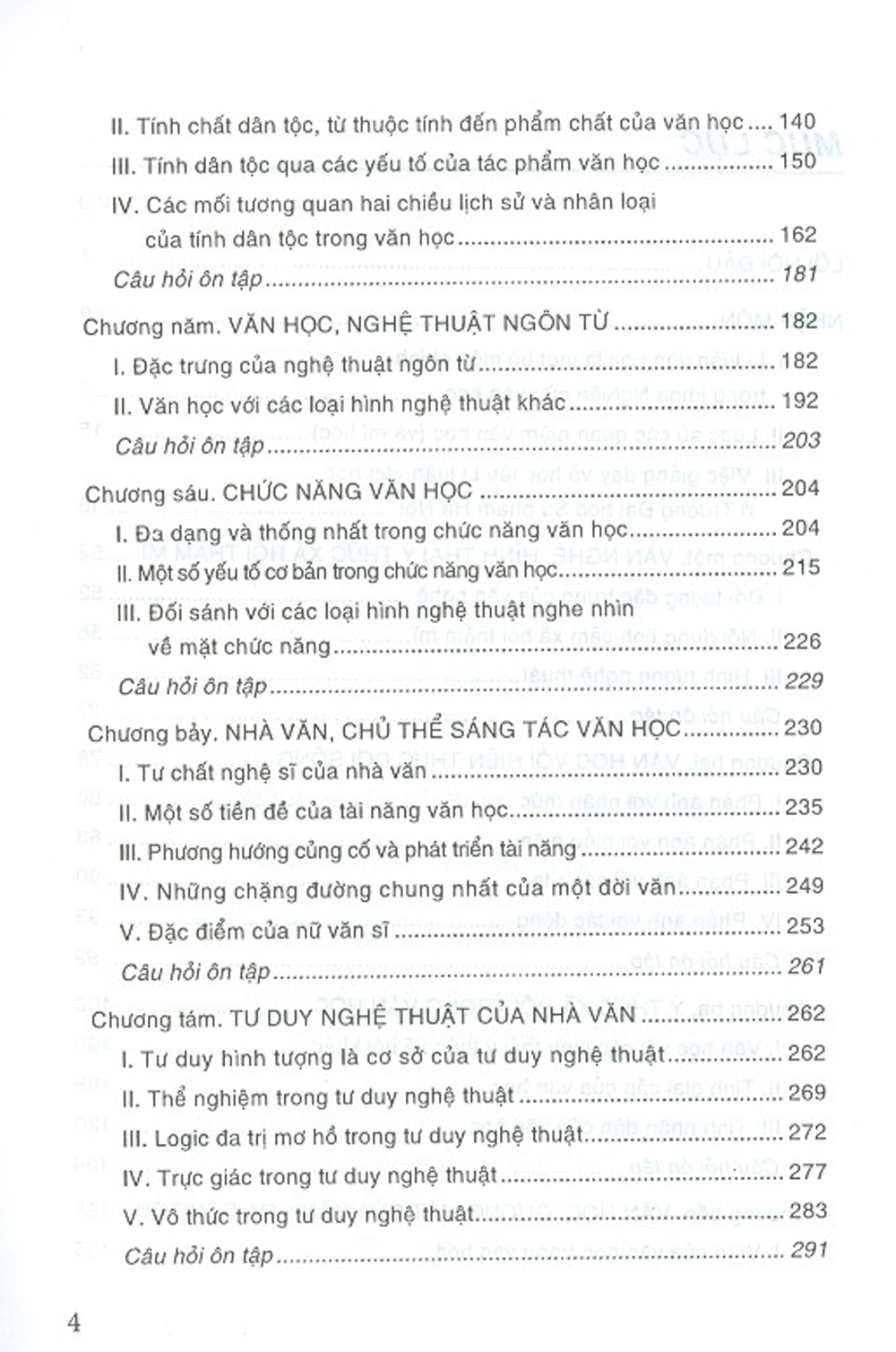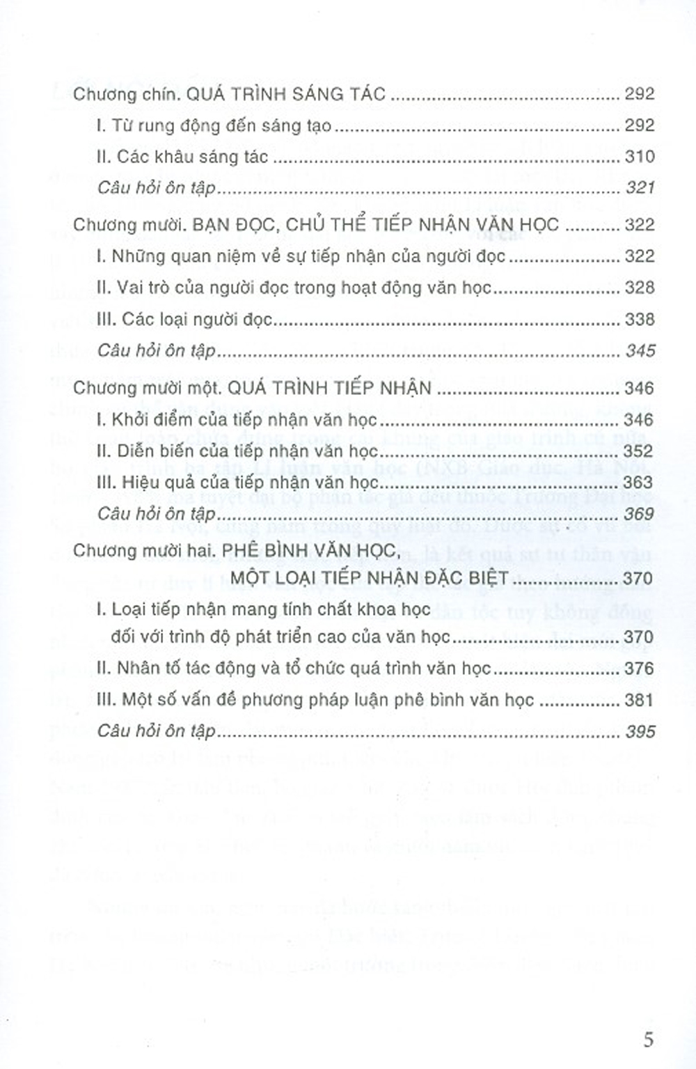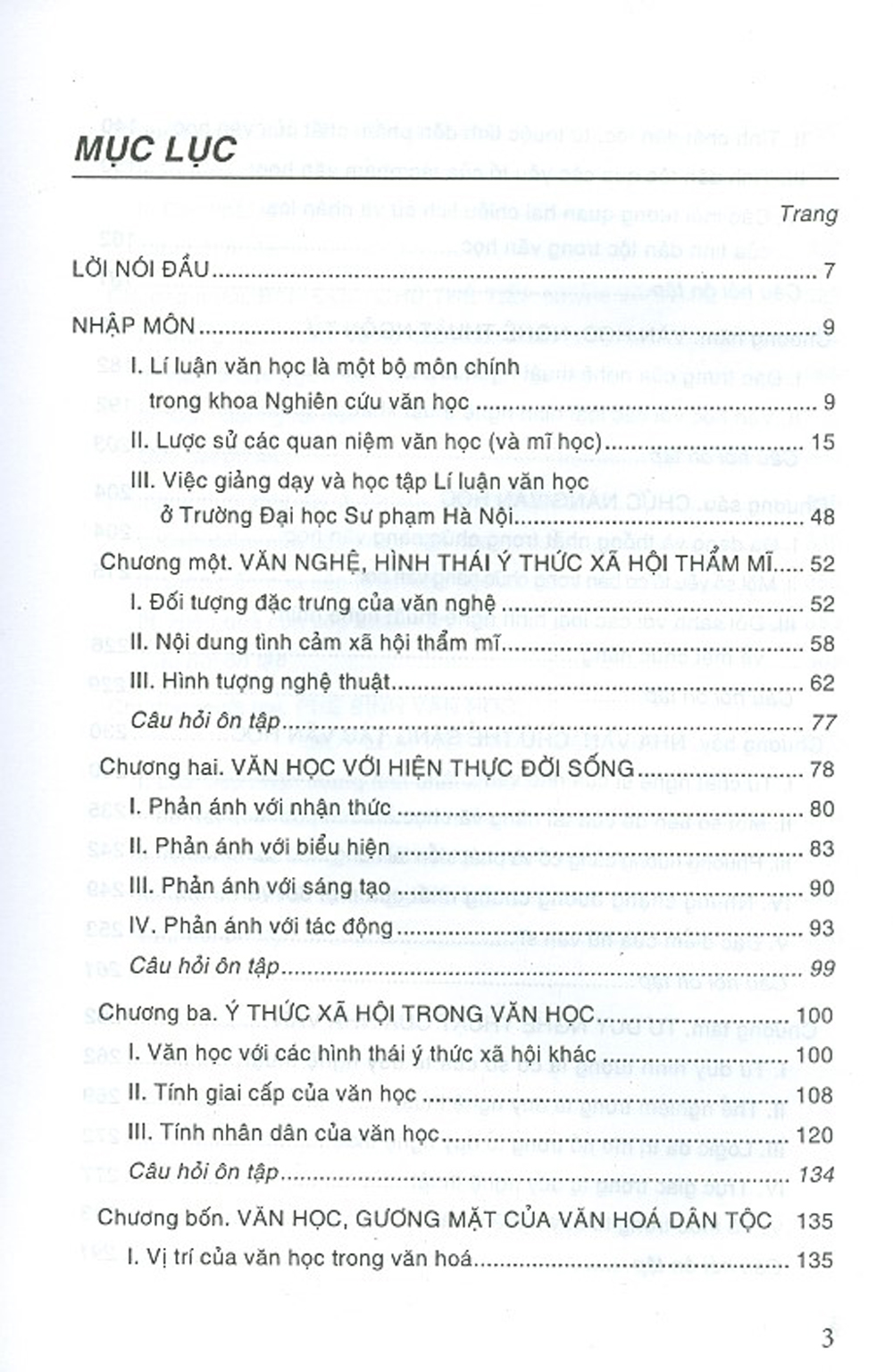 Chương 1: Văn học, hình thái ý thức xã hội thẩm mĩ Chương 2: Văn học với hiện thực đời sống Chương 3: Ý thức xã hội trong văn học Chương 4: Văn học, gương mặt của văn hoá dân tộc Chương 5: Văn học, nghệ thuật ngôn từ Chương 6: Chức năng văn học Chương 7: Nhà văn, chủ thể sáng tác văn học Chương 8: Tư duy nghệ thuật của nhà văn Chương 9: Quá trình sáng tác Chương 10: Bạn đọc, chủ thể tiếp nhận văn học Chương 11: Quá trình tiếp nhận Chương 12: Phê bình văn học, một loại tiếp nhận đặc biệt