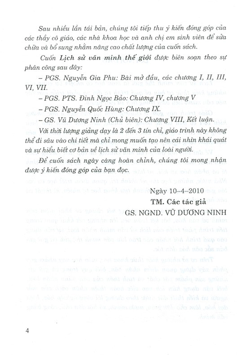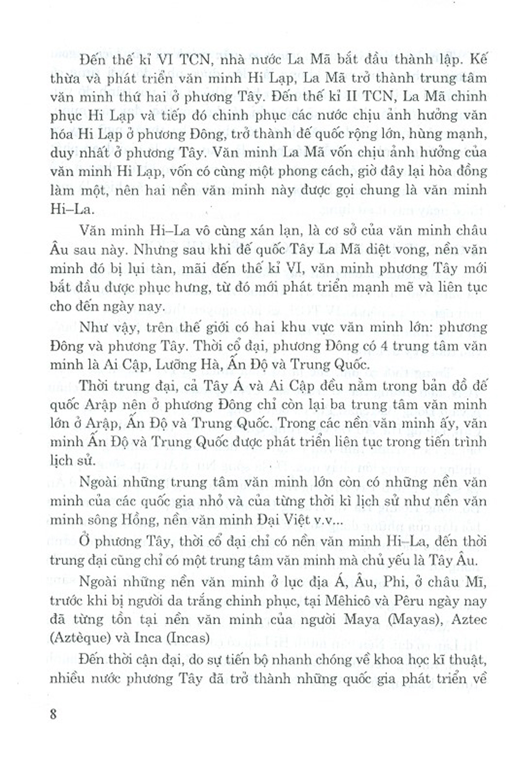 Mua tại TiktokNội dung của mỗi chương đề cập đến những điều kiện hình thành nền văn minh, giới thiệu trình độ phát triển kinh tế và phân hoá xã hội, sơ lược lịch sử thành lập và phân hoá xã hội, sơ lược lịch sử thành lập và cấu trúc của nhà nước, những học thuyết chính trị, quan điểm triết học và các tôn giáo lớn cùng những thành tựu khoa học tự nhiên, kỹ thuật và văn học nghệ thuật.