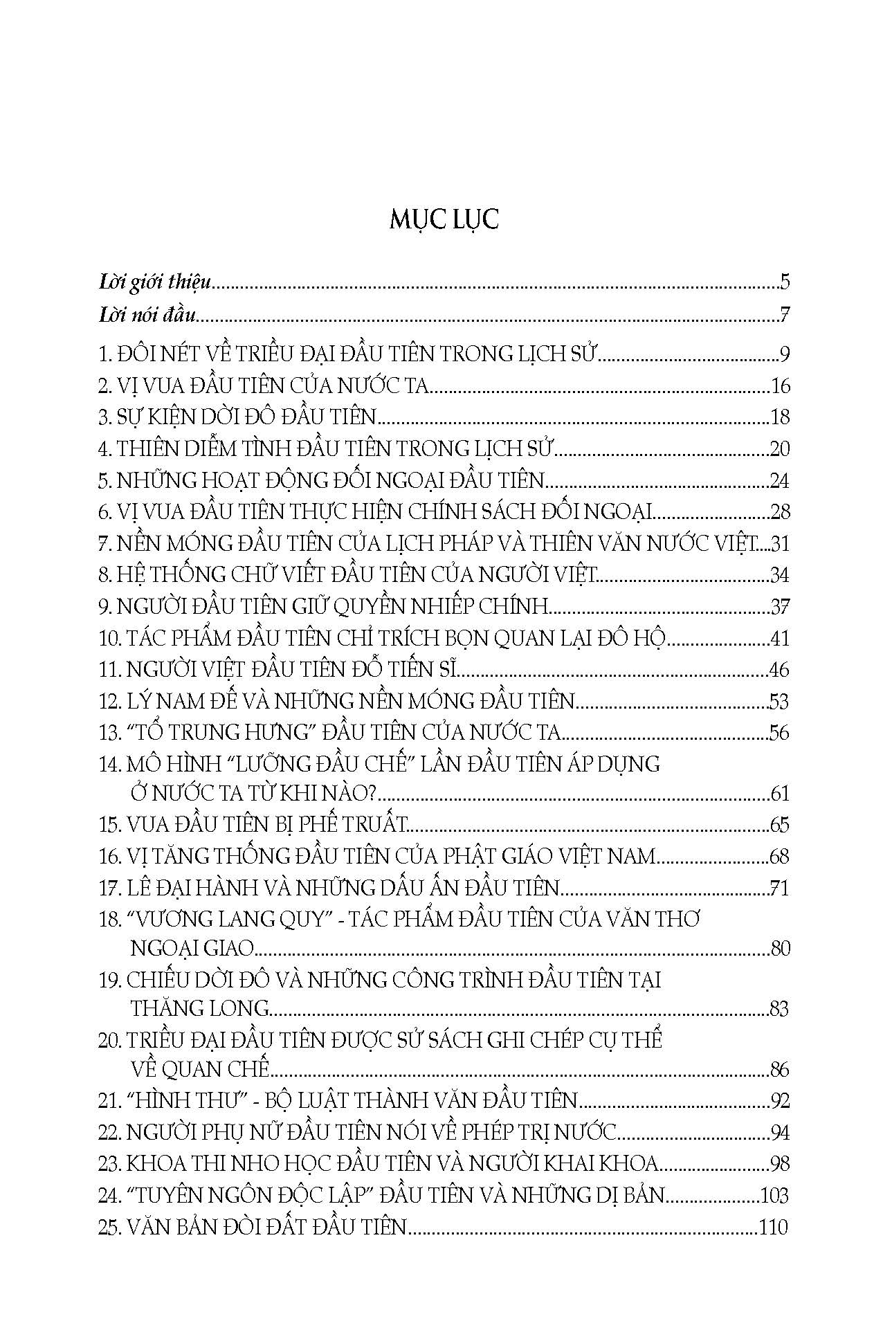 Mua tại TiktokLà một quốc gia có bề dày lịch sử, trải hàng ngàn năm đấu tranh và phát triển, Việt Nam đã có biết bao nhân vật, sự kiện để lại dấu ấn đậm nét, được ghi chép, ghi nhớ và lưu truyền trong đời sống xã hội. Nhằm góp phần vào hoạt động tuyên truyền “dân ta biết sử ta”, cuốn sách “Lịch Sử Việt Nam – Những Dấu Ấn Đầu Tiên” giới thiệu những dấu ấn đáng ghi nhớ trong lịch sử Việt Nam, với những câu chuyện thú vị về các danh nhân, sự kiện trong lịch sử dân tộc, giúp tìm hiểu lịch sử nước nhà, tự hào về truyền thống vẻ vang, những trang sử hào hùng mà ông cha đã viết nên trong suốt tiến trình dựng nước, giữ nước.