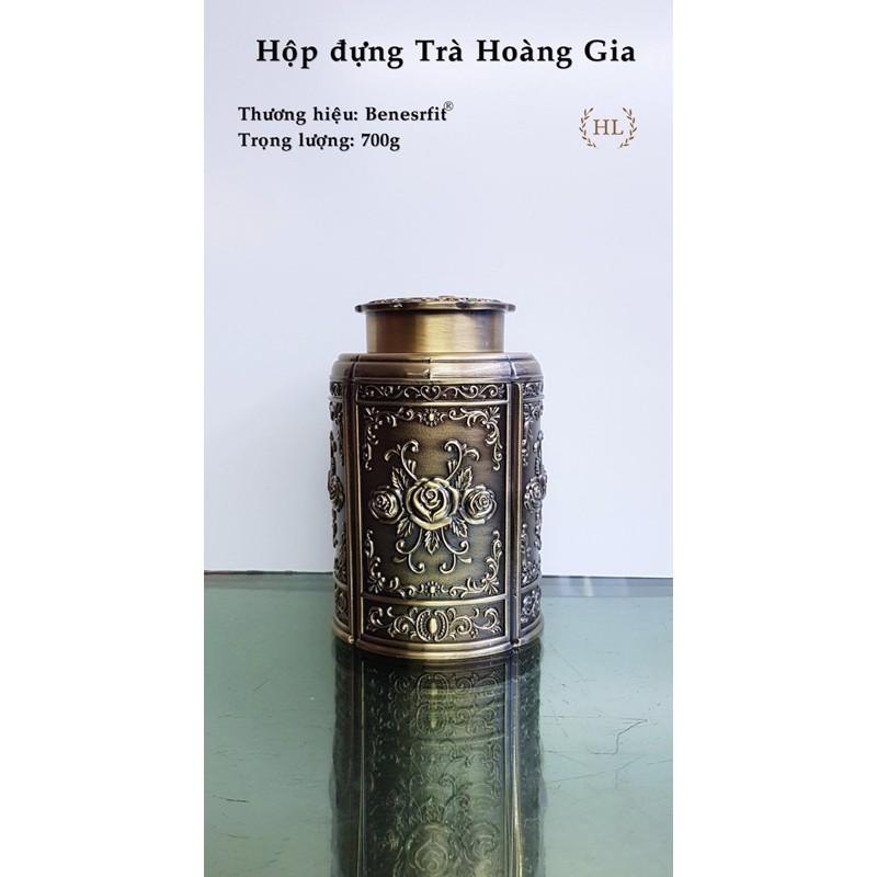 Hộp trà HADU hợp kim kẽm Hoàng Gia hoa văn thủ công tinh xảo có nắp đậy kín khít an toàn HDS025