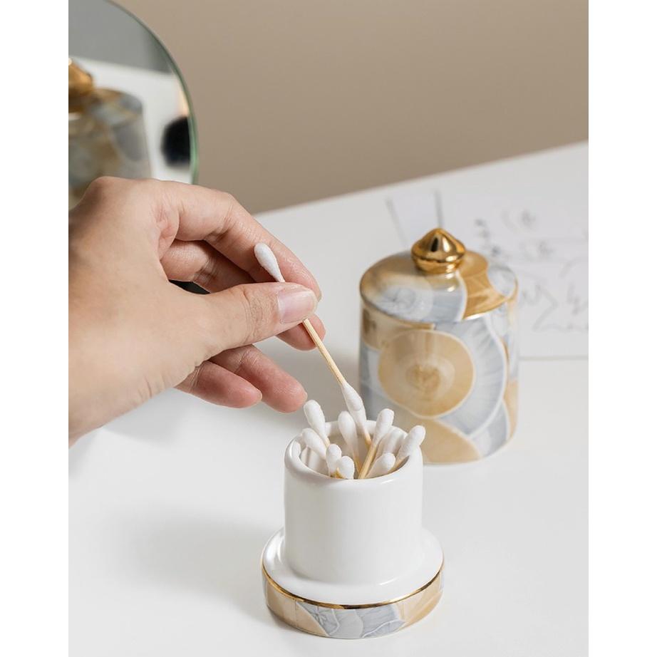 Hũ tăm bằng sứ cao cấp Màu sắc sang trọng Ngoài công dụng chính còn là phụ kiện trang trí trên bàn ăn