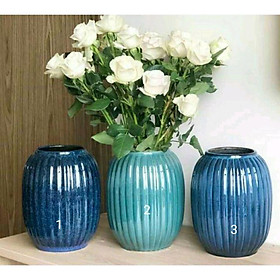 Mua tại TiktokLọ hoa bình bóng tròn Kích thước: cao 24cn,Đk 16cm 3 màu: xanh biển sẫm,xanh ngọc,xanh biển nhạt