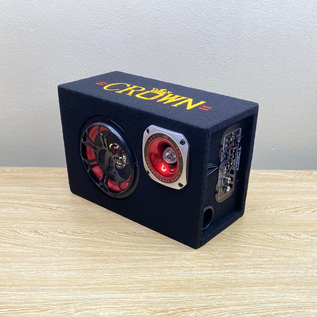 Mặt trước loa Crown 8 vuông là vị trí của loa bass với treb được thiết kế đẹp mắt, cho tổng thể loa nhìn hiện đại hơn. Bảng mạch thì được đặt bên hông với đầy đủ các nút điều chỉnh. Loa nghe nhạc Crown 8 vuông chất lượng âm thanh cao: