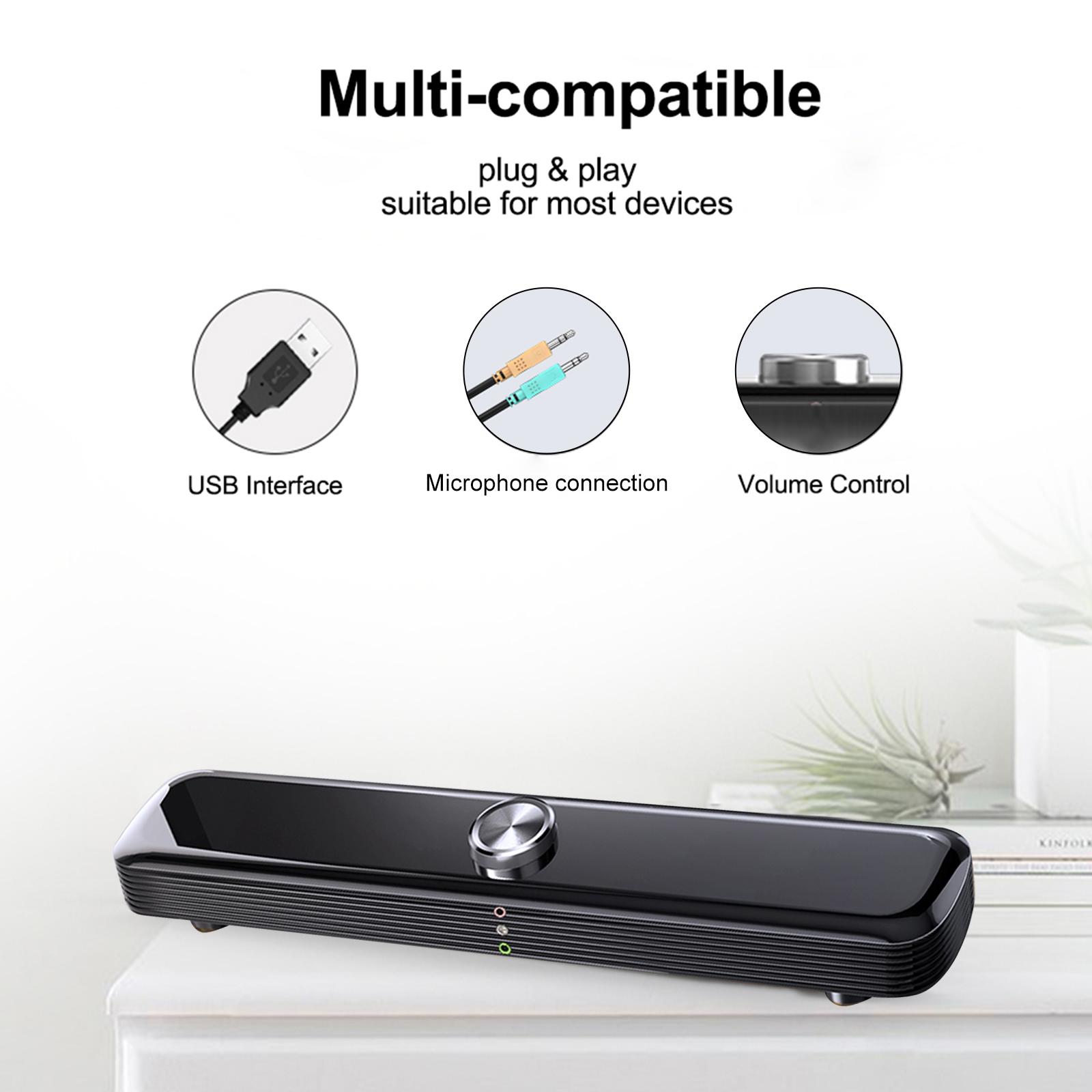 Overview: If you are finding a characteristic soundbar, this product is your dreaming item. Sound Bar uses unique noise reduction technology to equip your computer with high-quality full-range speakers. It is loud and clear, with