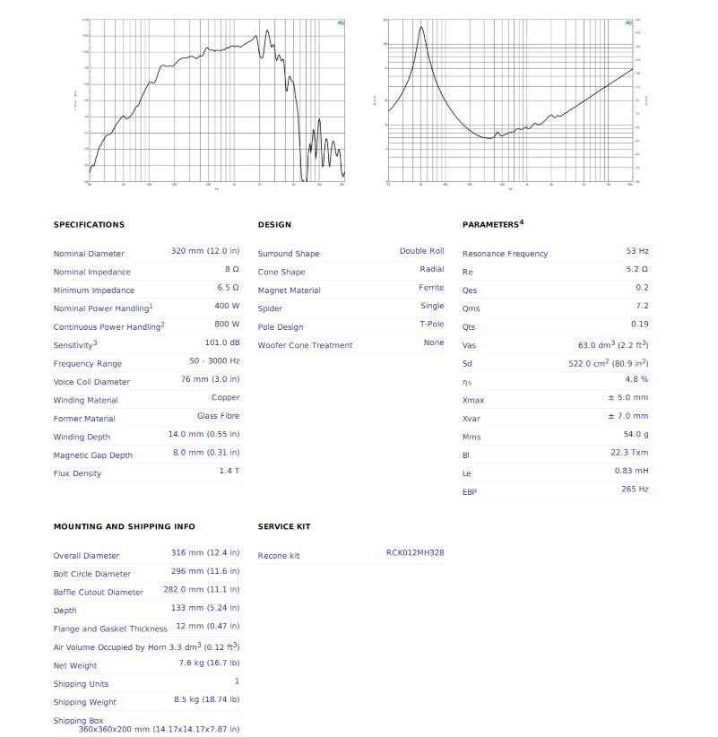 THÔNG SỐ KỸ THUẬT LOA BASS RỜI B&C SPEAKERS 12MH32