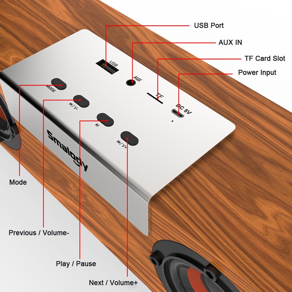 ✨Loa Subwoofer không dây 5W * 4 bằng gỗ Soundbar Bluetooth 5.0 SMALODY SL-90H