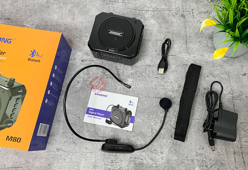 LOA TRỢ GIẢNG ZANSONG M80 - MÁY TRỢ GIẢNG KÈM MICRO CÀI TAI KHÔNG DÂY - KẾT NỐI BLUETOOTH 4.2, AUX, USB, SD CARD, FM - CÔNG SUẤT 10W - CÓ ECHO HÁT KARAOKE DỄ DÀNG - PIN SẠC DUNG LƯỢNG LỚN CHO THỜI GIAN SỬ DỤNG LÊN ĐẾN 6H - ÂM THANH RÕ RÀNG, SẮC NÉT