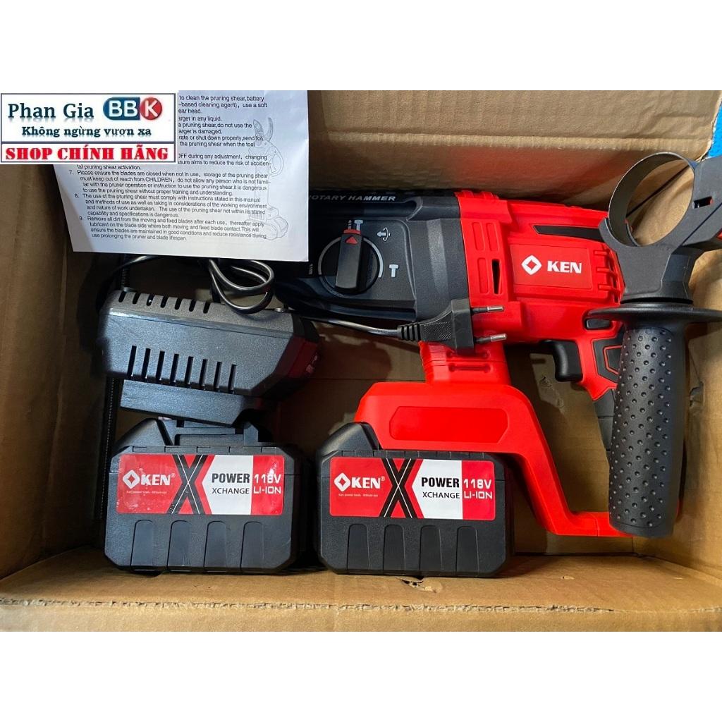 ✨[LOẠI 1] Máy Khoan Đục Bê Tông 3 Chức Năng Dùng Pin KEN 199V Động Cơ Không Chổi Than Bộ 2 Pin 15cell