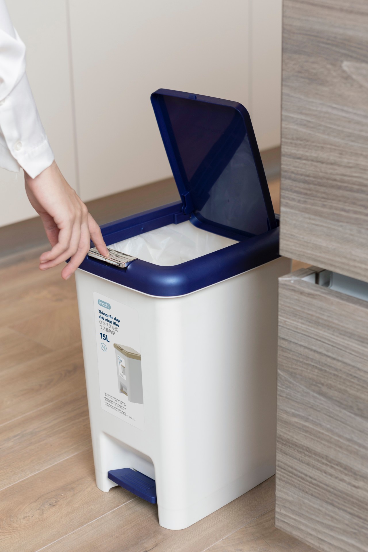 Lồng túi rác đúng cách I THÙNG RÁC ĐẠP CHỮ NHẬT HIRO I Inochi chính hãng