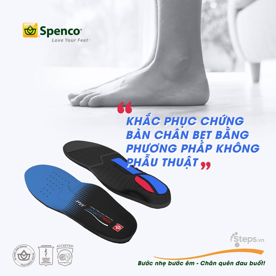 Đệm Lót Giày chỉnh hình Spenco được sản xuất theo tiêu chuẩn y khoa của Mỹ – Là thương hiệu hàng đầu tại Mỹ chuyên về lĩnh vực y tế và đi đầu thế giới trong công nghệ lót giày chăm sóc sức khỏe bàn chân. Dòng đế lót công nghệ TOTAL SUPPORT Technology đã nổi tiếng suốt 50 năm qua và mang lại thành công rực rỡ cho Spenco, đã và đang được người tiêu dùng Mỹ, Châu Âu, Châu Á ưa chuộng và tin dùng.
