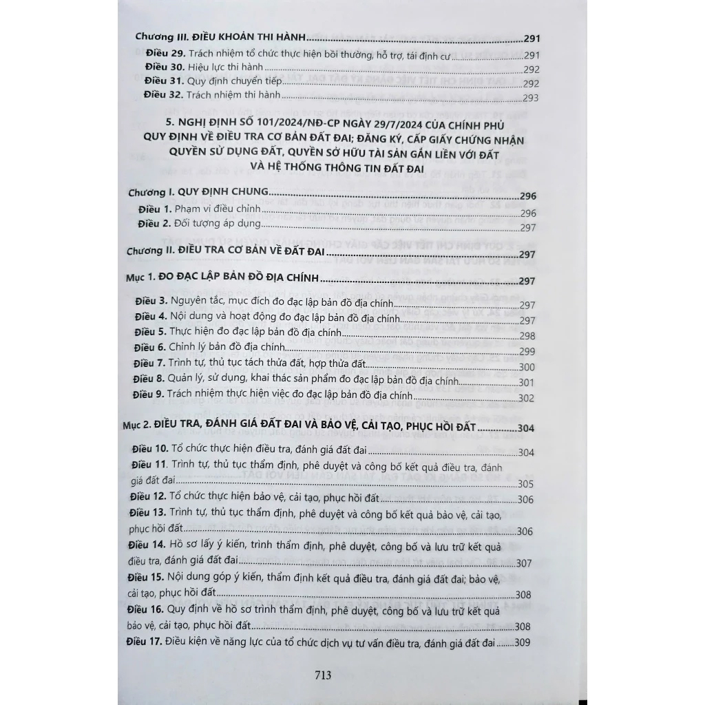 - NGHỊ ĐỊNH SỐ 101/2024/NĐ-CP NGÀY 29/7/2024 CỦA CHÍNH PHỦ QUY ĐỊNH VỀ ĐIỀU TRA CƠ BẢN ĐẤT ĐAI; ĐĂNG KÝ, CẤP GIẤY CHỨNG NHẬN QUYỀN SỬ DỤNG ĐẤT, QUYỀN SỞ HỮU TÀI SẢN GẮN LIỀN VỚI ĐẤT VÀ HỆ THỐNG THÔNG TIN ĐẤT ĐAI