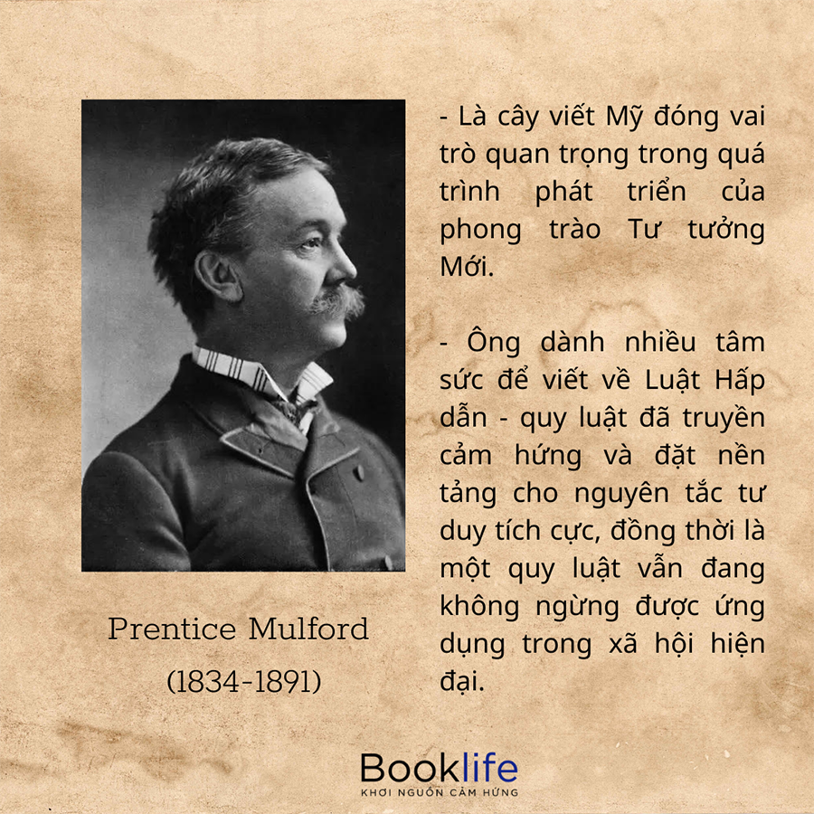 Prentice Mulford (1834-1891) là cây viết Mỹ đóng vai trò quan trọng trong quá trình phát triển của phong trào Tư tưởng Mới. Nhiều nguyên tắc và quy luật tiêu biểu của phong trào đã được Mulford trình bày chi tiết trong những bài luận xuất bản vào năm tháng cuối đời. Ông dành nhiều tâm sức để viết về Luật Hấp dẫn - quy luật đã truyền cảm hứng và đặt nền tảng cho nguyên tắc tư duy tích cực, đồng thời là một quy luật vẫn đang không ngừng được ứng dụng trong xã hội hiện đại.
