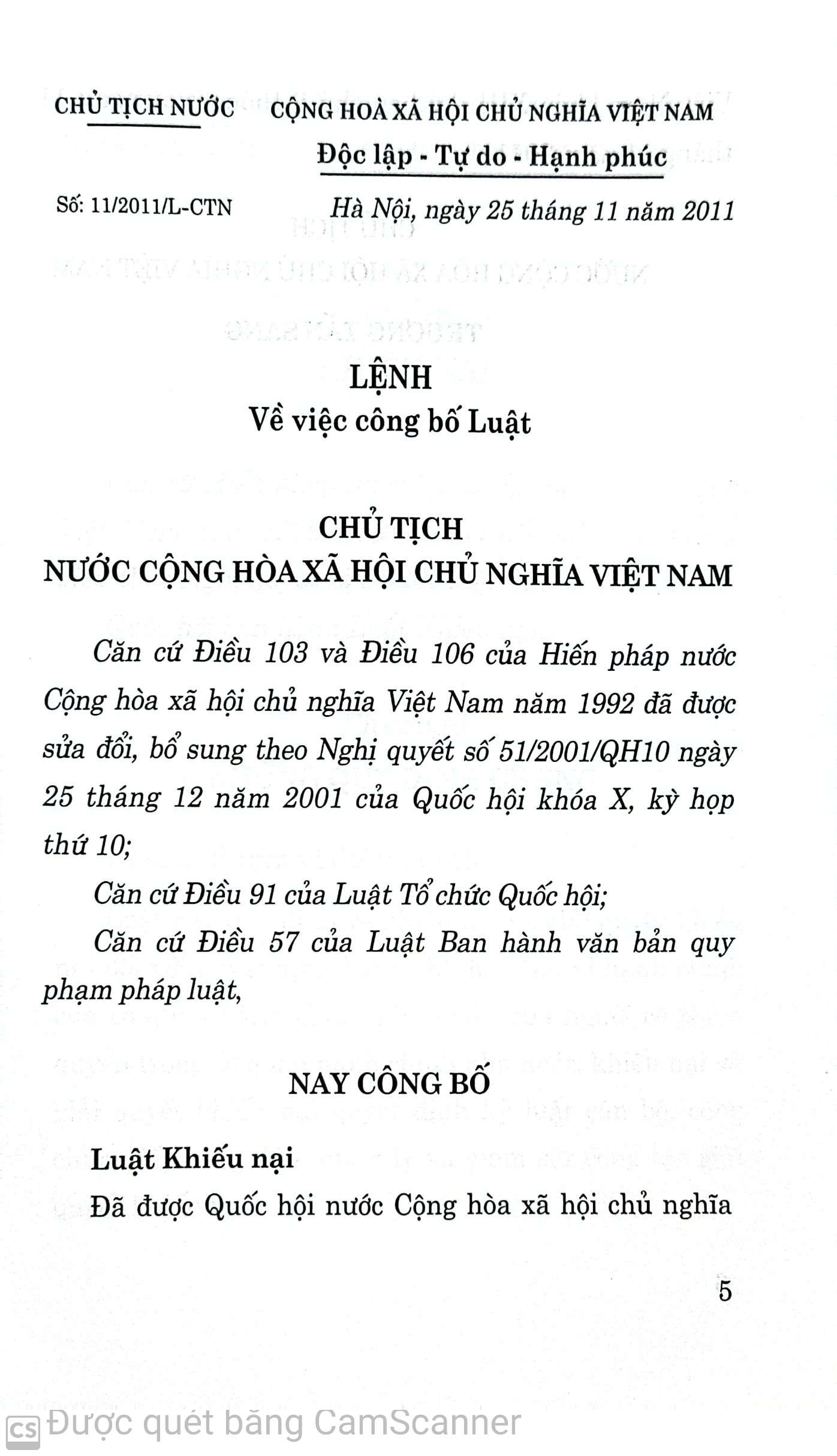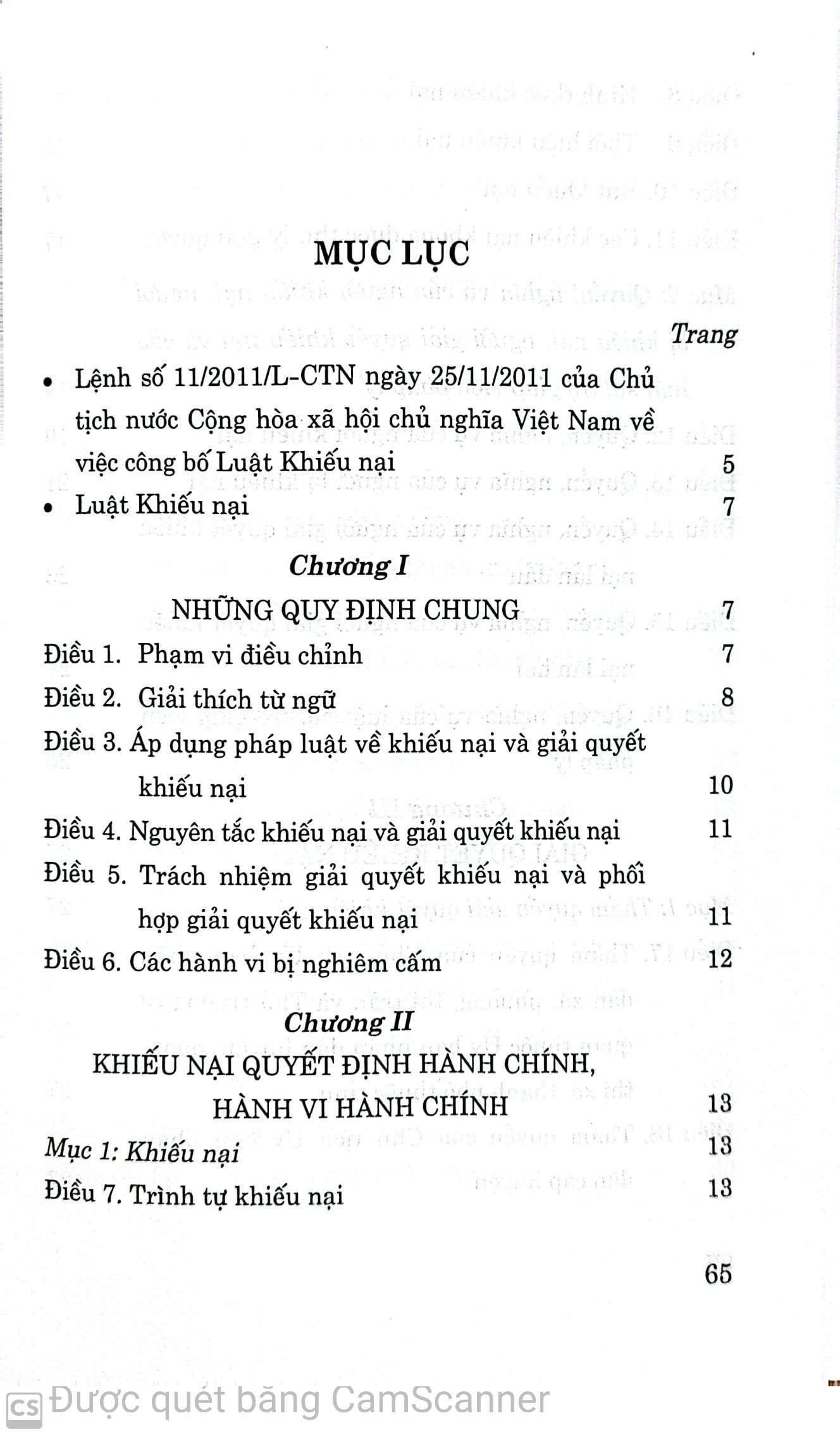 Mua tại TiktokLuật Khiếu nại được Quốc hội nước Cộng hòa xã hội chủ nghĩa Việt Nam khóa XIII, kỳ họp thứ 2 thông qua ngày 11/11/2011, có hiệu lực thi hành từ ngày 01/7/2012. Luật gồm 8 chương, 70 điều, quy định về khiếu nại và giải quyết khiếu nại đối với quyết định hành chính, hành vi hành chính của cơ quan hành chính nhà nước, của người có thẩm quyền trong cơ quan hành chính nhà nước; khiếu nại và giải quyết khiếu nại quyết định kỷ luật cán bộ, công chức; tiếp công dân; trách nhiệm của cơ quan, tổ chức, cá nhân có thẩm quyền trong việc quản lý công tác giải quyết khiếu nại; xử lý vi phạm.