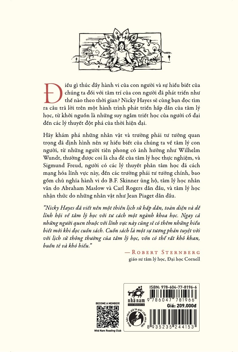 Điều gì thúc đẩy hành vi của con người và sự hiểu biết của chúng ta đối với tâm trí của con người đã phát triển như thế nào theo thời gian? Nicky Hayes sẽ cùng bạn đọc tìm ra câu trả lời trên một hành trình phát triển hấp dẫn của tâm lý học, từ khởi nguồn là những suy ngẫm triết học của người cổ đại đến các lý thuyết đột phá của thời hiện đại. Hãy khám phá những nhân vật và trường phái tư tưởng quan trọng đã định hình nên sự hiểu biết của chúng ta về tâm lý con người, từ những người tiên phong có ảnh hưởng như Wilhelm Wundt, thường được coi là cha đẻ của tâm lý học thực nghiệm, và Sigmund Freud, người có các lý thuyết phân tâm học đã cách mạng hóa lĩnh vực này, đến các trường phái tư tưởng chính, bao gồm chủ nghĩa hành vi do B.F. Skinner ủng hộ, tâm lý học nhân văn do Abraham Maslow và Carl Rogers dẫn đầu, và tâm lý học nhận thức do những nhân vật như Jean Piaget dẫn đầu.