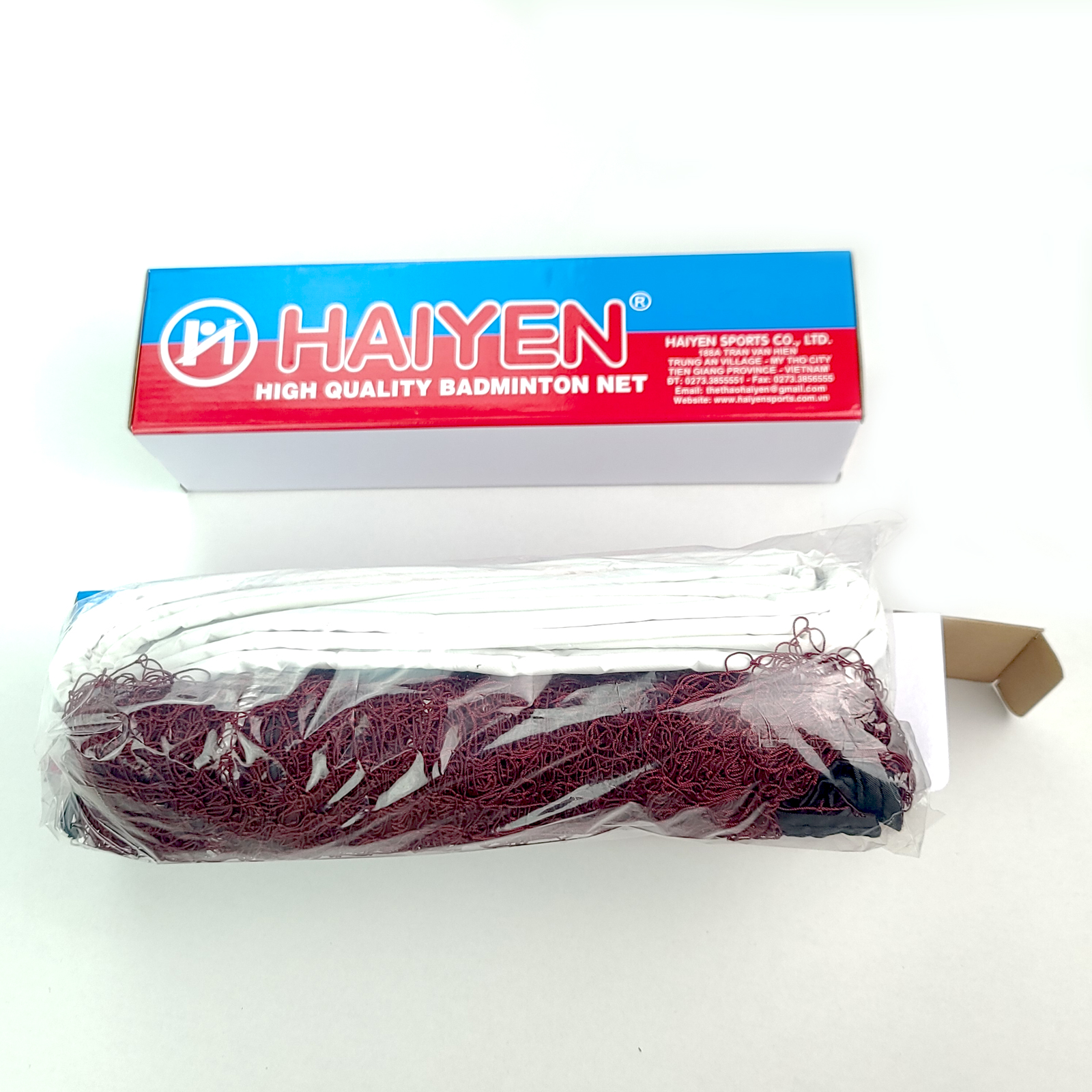 - Thương hiệu: Hải Yến. - Xuất xứ: Việt Nam. - Lưới cầu lông Hải Yến chính hãng được làm từ sợi tổng hợp, có mắt lưới đều, không xô và viền chạy đều. -