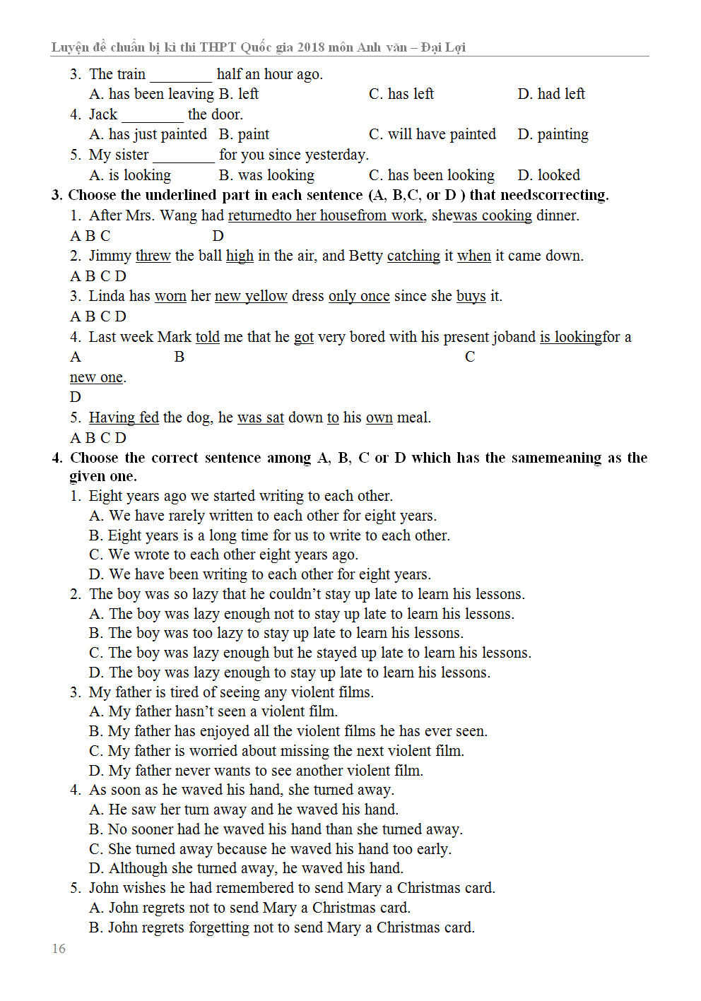 Kỳ thi THPT quốc gia sắp đến rồi. Các em đã chuẩn bị hành trang cho kỳ thi sắp tới của các em chưa? Với mong muốn mang lại một tài liệu thật hay, thật chuẩn để giúp các em sẵn sàng cho kỳ thi THPT Quốc gia sắp tới, chúng tôi, nhóm biên soạn đến từ Đại học Sư phạm Hà Nội, Đại học Quốc gia Hà Nội đã cùng chung tay biên soạn cuốn sách “Luyện đề chuẩn bị kì thi THPT Quốc gia 2018 môn Anh văn”.