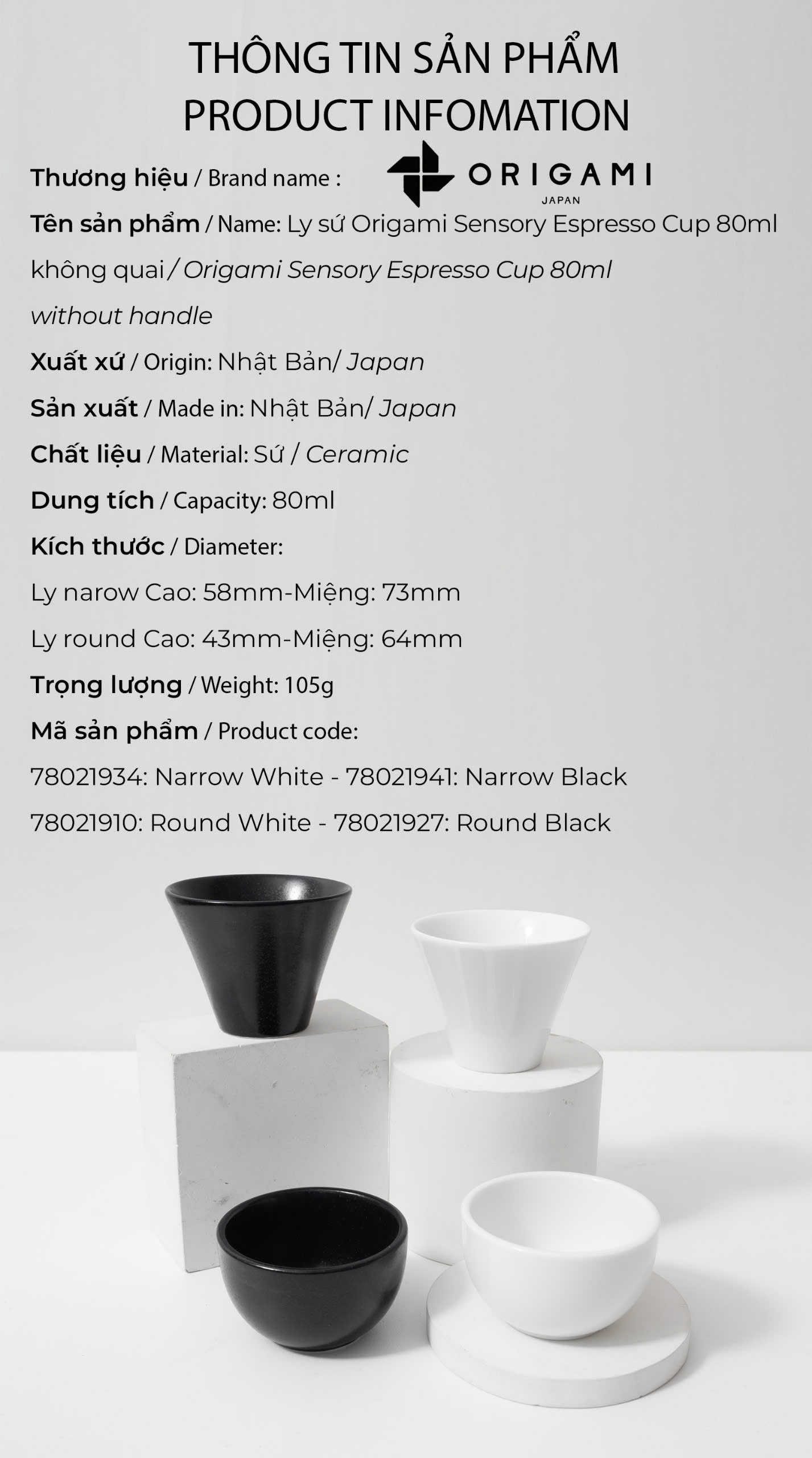 LY SỨ ORIGAMI SENSORY ESPRESSO CUP 80ML KHÔNG QUAI