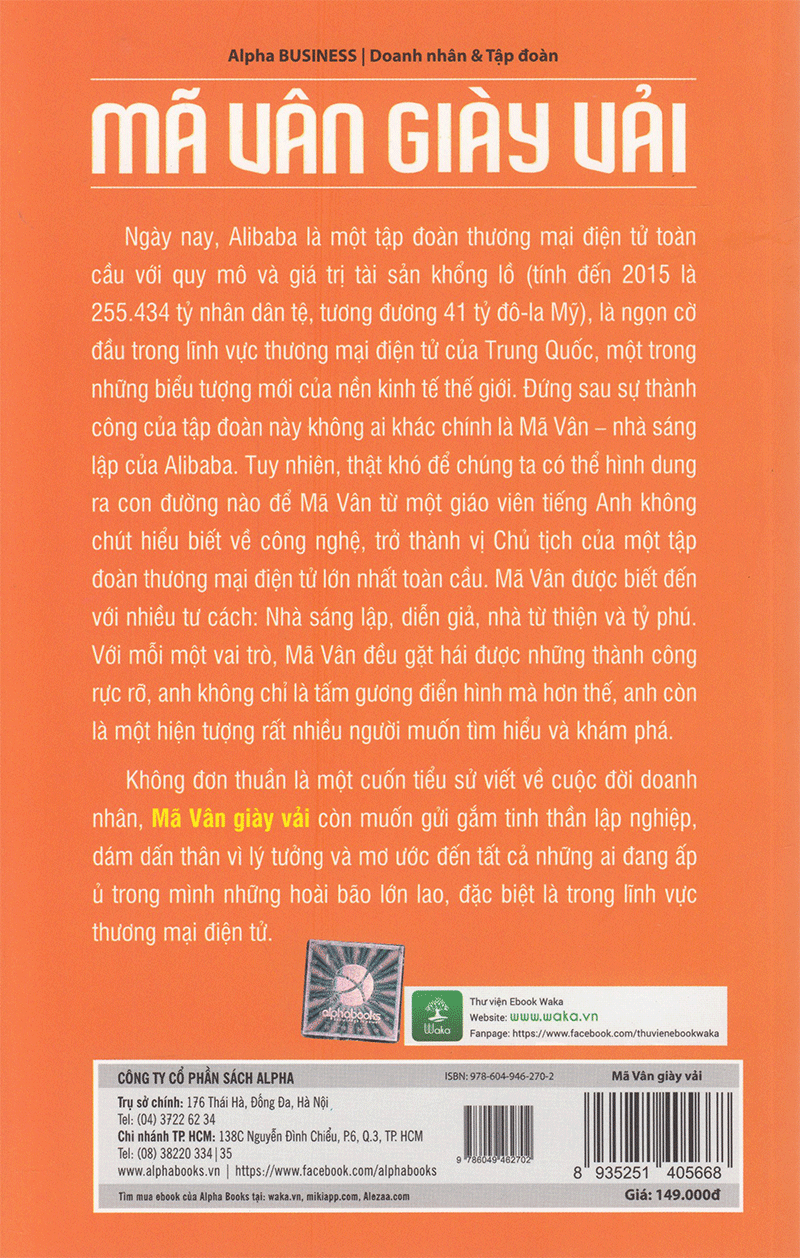 Mã Vân Giày Vải (Tái BảnNgày nay, ALIBABA là một tập đoàn thương mại điện tử toàn cầu với quy mô và giá trị tài sản khổng lồ (tính đến 2015 là 255.434 tỷ nhân dân tệ, tương đương 41 tỷ đô-la Mỹ), là...