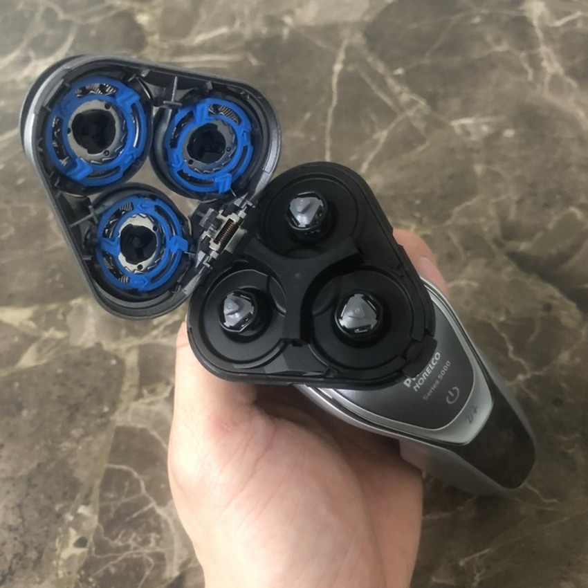 - 3 đầu cạo thiết kế lượn tròn linh động, giúp người dùng cạo sát rất êm ái mà không cắt xước vào da.