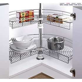 Đặc điểm nổi bật của Mâm xoay bằng inox - Mâm xoay 3/4 Inox 304 cao cấp sợi tròn: - Thiết kế 1 trục cố định ở giữa và 2 mâm inox nan có thể