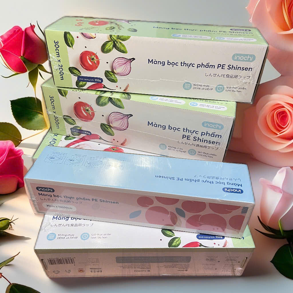 Màng Bọc Thực Phẩm , Đồ Ăn PE Shinsen Đạt Tiêu Chuẩn Tiêu Dùng Nhật Bản Đảm Bảo An Toàn Cho Người Sử Dụng - Chính Hãng inochi ( Tặng kèm khăn lau pakasa)