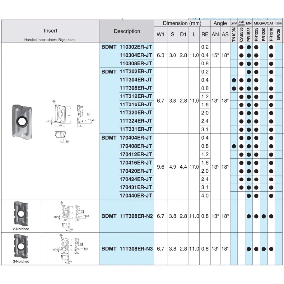 ✨Mảnh Dao Phay Phủ PVD Kyocera Model BDMT11T312ER-JT PR1535