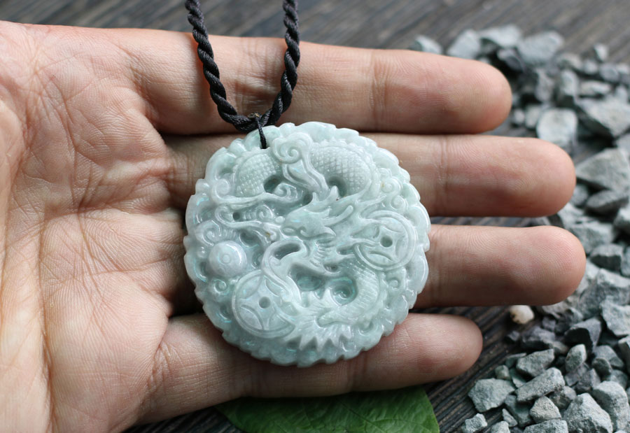 ✨Mặt Dây Chuyền Cẩm Thạch Chạm Rồng Ngọc Quý Gemstones MD40 (5cm)