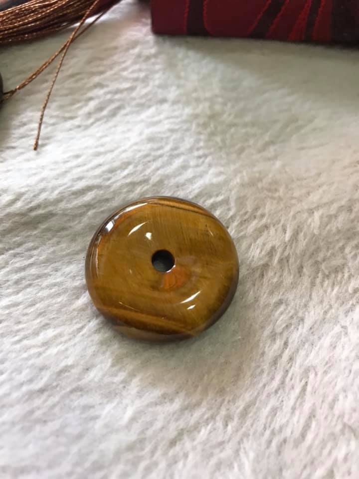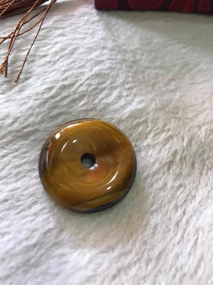 Mua tại TiktokMặt Dây Chuyền Đồng Tiền Điếu đá mắt hổ vàng nâu tự nhiên Size 30mm x dầy 8mm Hợp mệnh Kim Thổ Thủy