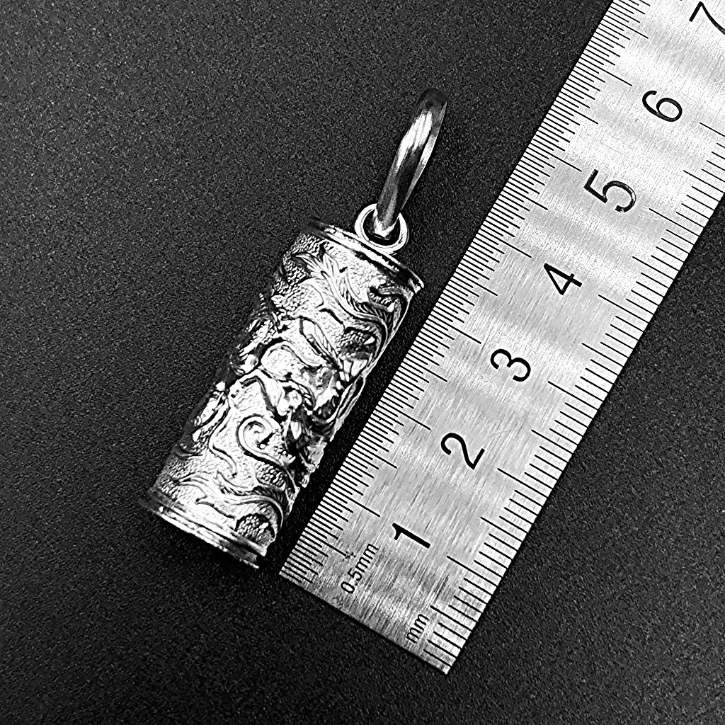 Mặt Dây Chuyền Nam Nữ Đựng Bùa Hình Trụ Khắc Họa Tiết Rồng Bạc Hiểu Minh MDN023L ( himi.vn )