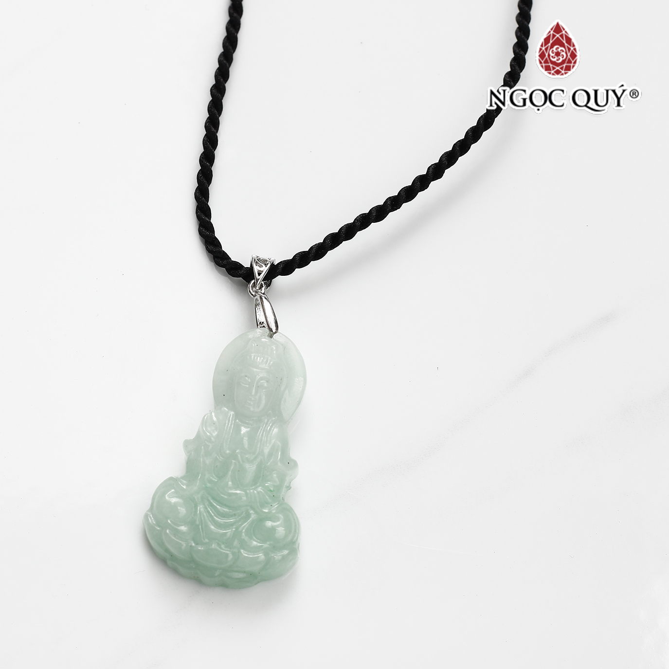 Mặt Phật Bà đứng Cẩm Thạch xanh trắng lí - Chất liệu: Ngọc Cẩm Thạch tự nhiên. - Màu sắc: Xanh lí phớt trắng - Kích thước: ngang 49mm, cao 23mm, dày 4mmx8mm - Mã kiểm định: 86691 - Tiêu chuẩn