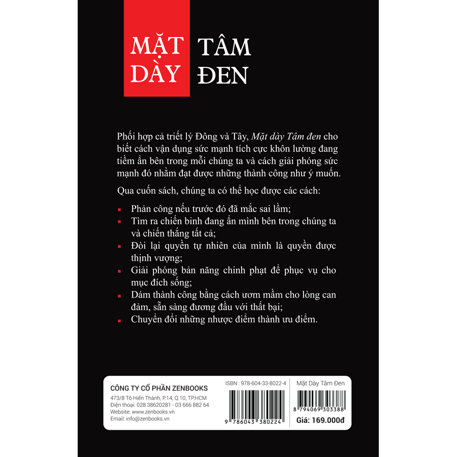 Mặt dày tâm đen là cuốn cẩm nang kết hợp tri thức Đông Tây, khám phá cách thức áp dụng binh pháp trận mạc của Á Đông cùng những tư duy văn hóa để có được tinh thần bền bỉ và rèn luyện những kỹ năng kinh doanh trong thời đại ngày nay. Với công thức thành công được đúc kết từ cuốn sách Hậu Hắc học xuất bản năm 1911 (và bị cấm tại Trung Quốc từ thời điểm đó), Mặt dày tâm đen khẳng định rằng sẽ không có sự khai sáng thực sự nếu chúng ta không nhận thức đầy đủ về những mặt tối. Để thành công, một người phải “dày mặt” để làm tấm khiên chống lại lòng tự trọng của chính mình, cùng một trái “tim đen” để thực thi đến cùng. Kết quả sẽ là hình tượng về một người hùng trong thế giới hiện đại, một người không ngừng suy ngẫm và hành động bất chấp mọi ràng buộc. Vượt qua cả Binh pháp Tôn Tử, cuốn sách này sẽ giúp độc giả tìm thấy người chiến binh bên trong bản thân mình và chinh phục mọi thứ trên con đường mình đã chọn, cũng như biến mọi trở ngại tiêu cực thành lợi thế cho mình.