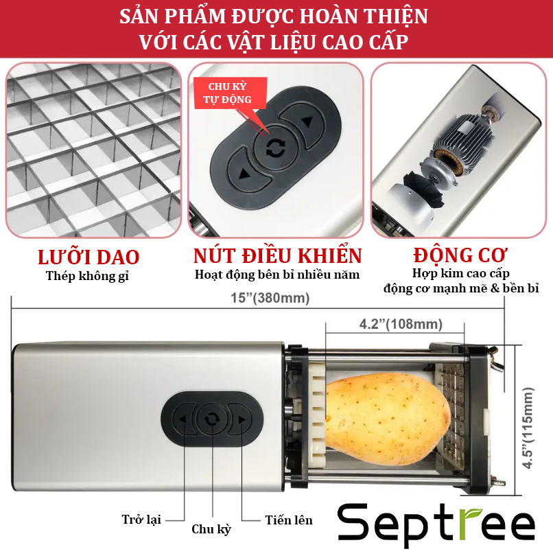 ✨Máy cắt khoai tây chiên, các loại củ và quả đa năng. Thương hiệu Mỹ Septree cao cấp - F300, Kiểu dáng Pháp [Hàng chính hãng, Bảo hành 12 Tháng]