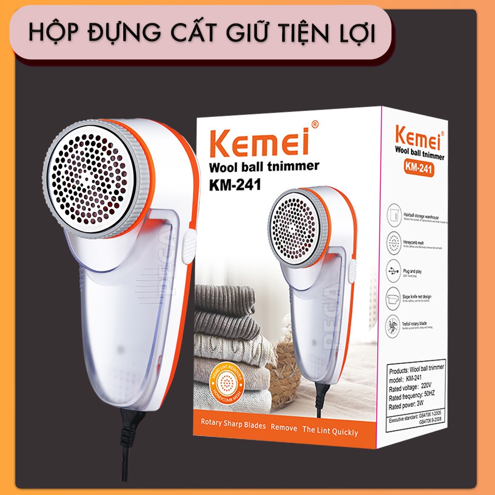 ✨Máy cắt lông xù vải Kemei Km-241 chuyên dụng cắt lông xù quần áo, ga nệm nhanh chống sử dụng dây sạc tiện lợi - Hàng chính hãng