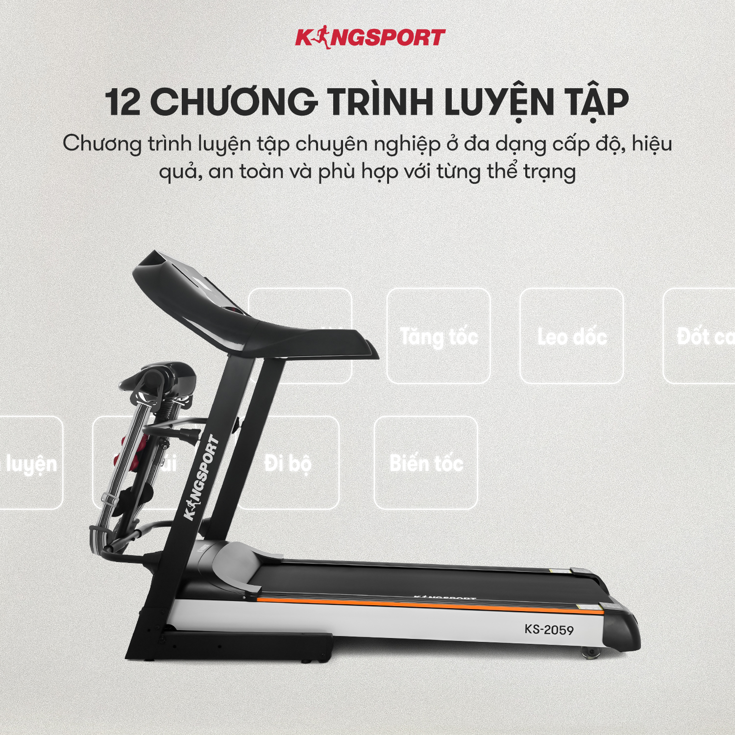 ✨Máy chạy bộ KINGSPORT KS-2059 New nâng dốc tự động 18%, tốc độ tối đa 18km/h, kèm đai massage và thanh gập bụng, cân nặng phù hợp từ dưới 80-85kg