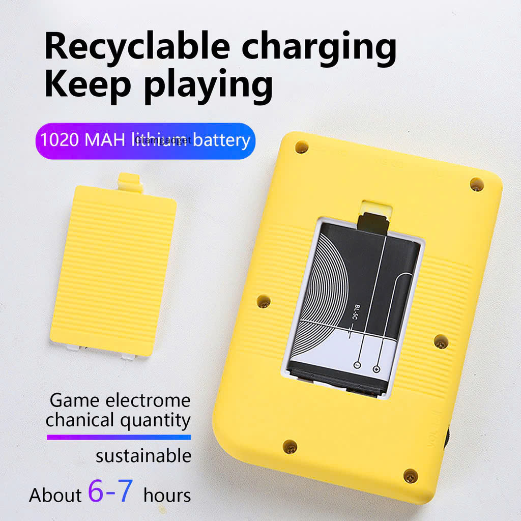 Kiểu màu: Hồng / Xanh dương / Xanh lá / vàng / xám Kích thước màn hình: khoảng 2,4 inch Số lượng trò chơi: 500 trò chơi cài sẵn Kích thước sản phẩm: 11,5 *