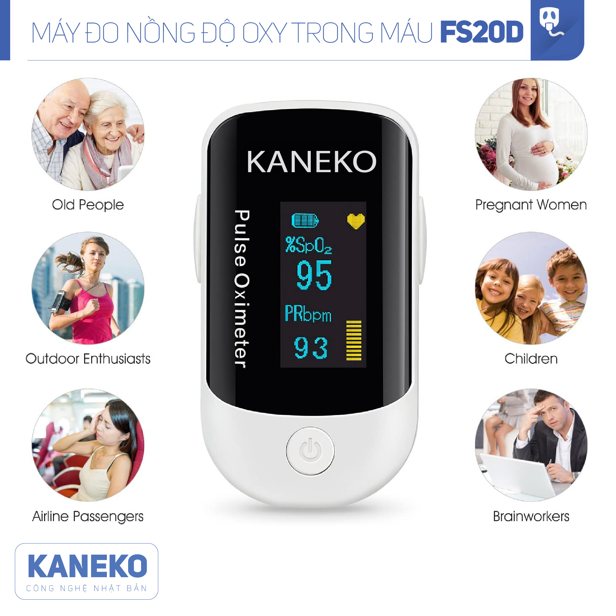 ✨Máy đo nồng độ oxy trong máu KANEKO FS20D, SPO2, đo nhịp tim, có màn hình hiển thị rõ ràng