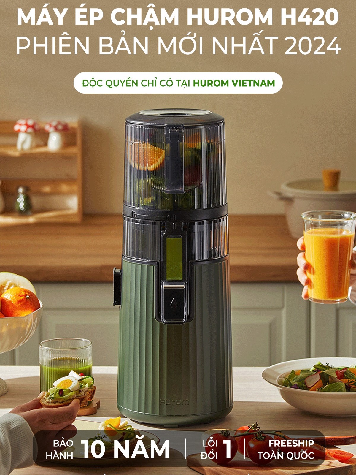 Với máy ép chậm Hurom H420 phiên bản giới hạn được bảo hành lên đến 10 năm, cam kết 1 đổi 1 trong vòng 30 ngày nếu phát sinh lỗi từ nhà sản xuất, Hurom Việt Nam đã khẳng định vị thế của mình trong lòng người tiêu dùng, không chỉ là một thương hiệu uy tín mà còn là người bạn đồng hành đáng tin cậy trên hành trình chăm sóc sức khỏe và sắc đẹp.