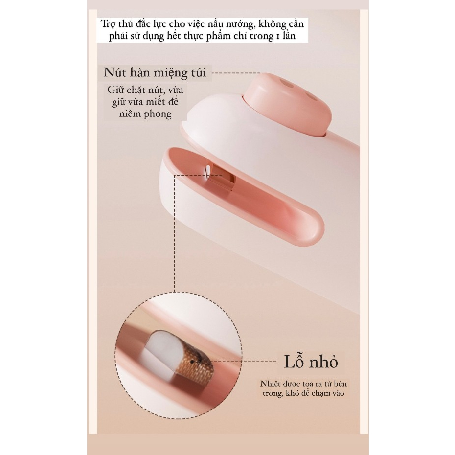 Mua tại TiktokMáy Hàn Miệng Túi Cầm Tay Cute, Máy Ép Miệng Túi Đồ Ăn Vặt Sạc Pin Tích Hợp Nam Châm Kèm Đầu Cắt Tiện Dụng - Hàng Chính Hãng MINIIN