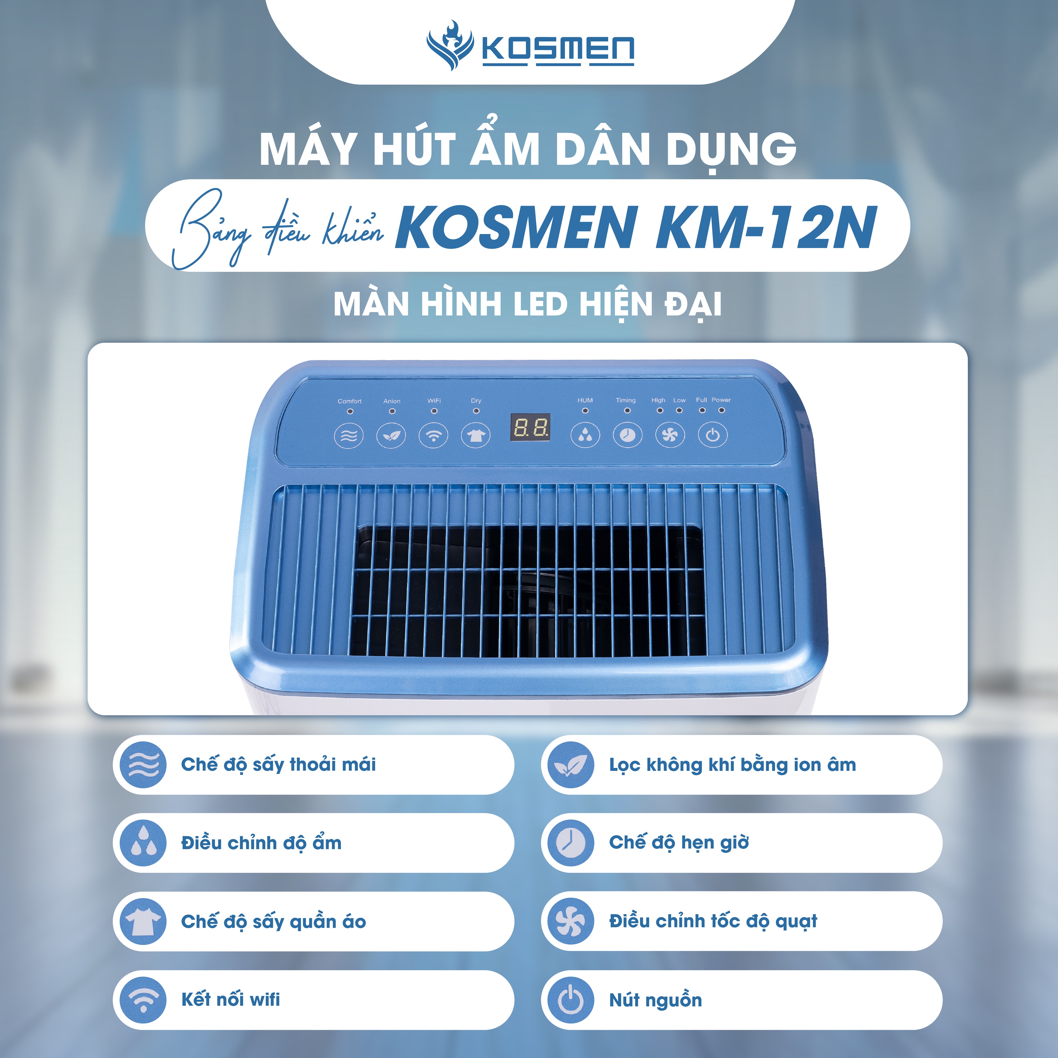 Máy hút ẩm lọc không khí Kosmen KM-12N là dòng sản phẩm nổi bật được nhiều khách hàng ưa chuộng bởi tính hữu dụng và độ bền bỉ, ứng dụng tốt trong cả không gian