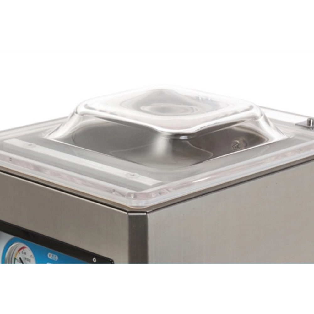 - Vỏ ngoài của máy được làm bằng thép không gỉ. Các thông số kỹ thuật cần thiết cho việc đóng gói sản phẩm có thể được lập trình trước. Khi nhấn nắp buồng hút chân không, toàn bộ quá trình đóng gói chân không được hoàn thành theo chương trình tự động. Nắp máy được làm bằng tấm mica trong suốt hoàn toàn giúp quan sát dễ dàng về quy trình đóng gói hút chân không.