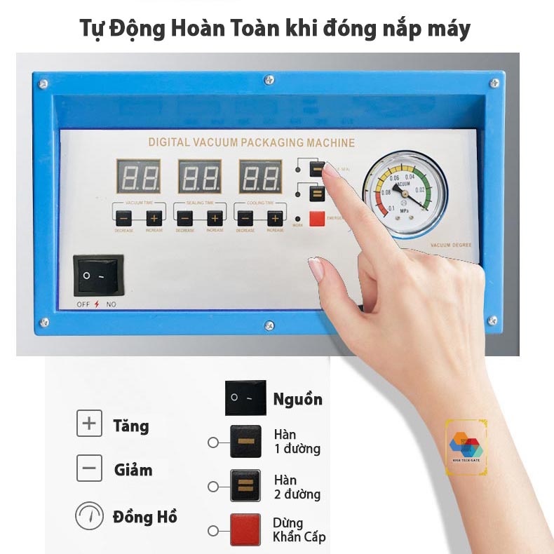 Đặc điểm nổi bật: - 5 nhiệt độ hàn miệng (niêm phong) miệng túi tương thích theo độ dày của túi sử dụng - Thiết kế chống thấm nước, ngắn chất lỏng xâm nhập vào