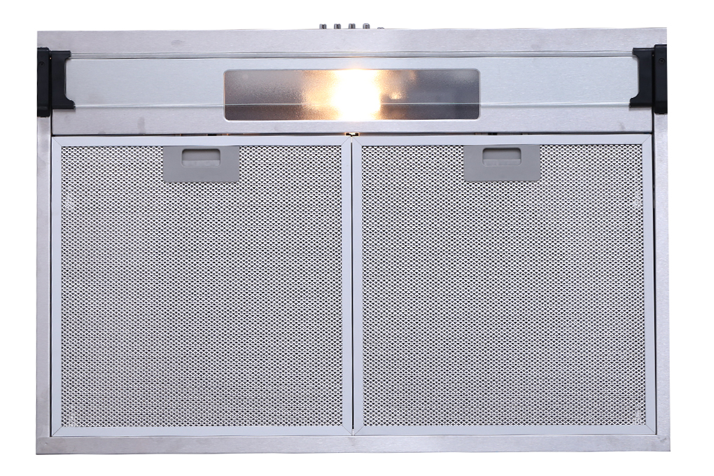TÍNH NĂNG SẢN PHẨM Máy hút mùi âm tủ Đèn Led siêu sáng Điều khiển cơ rút trượt 2 cấp độ Máy kéo ra bật, đóng vào tắt Lưới lọc mỡ bằng nhôm 5 lớp